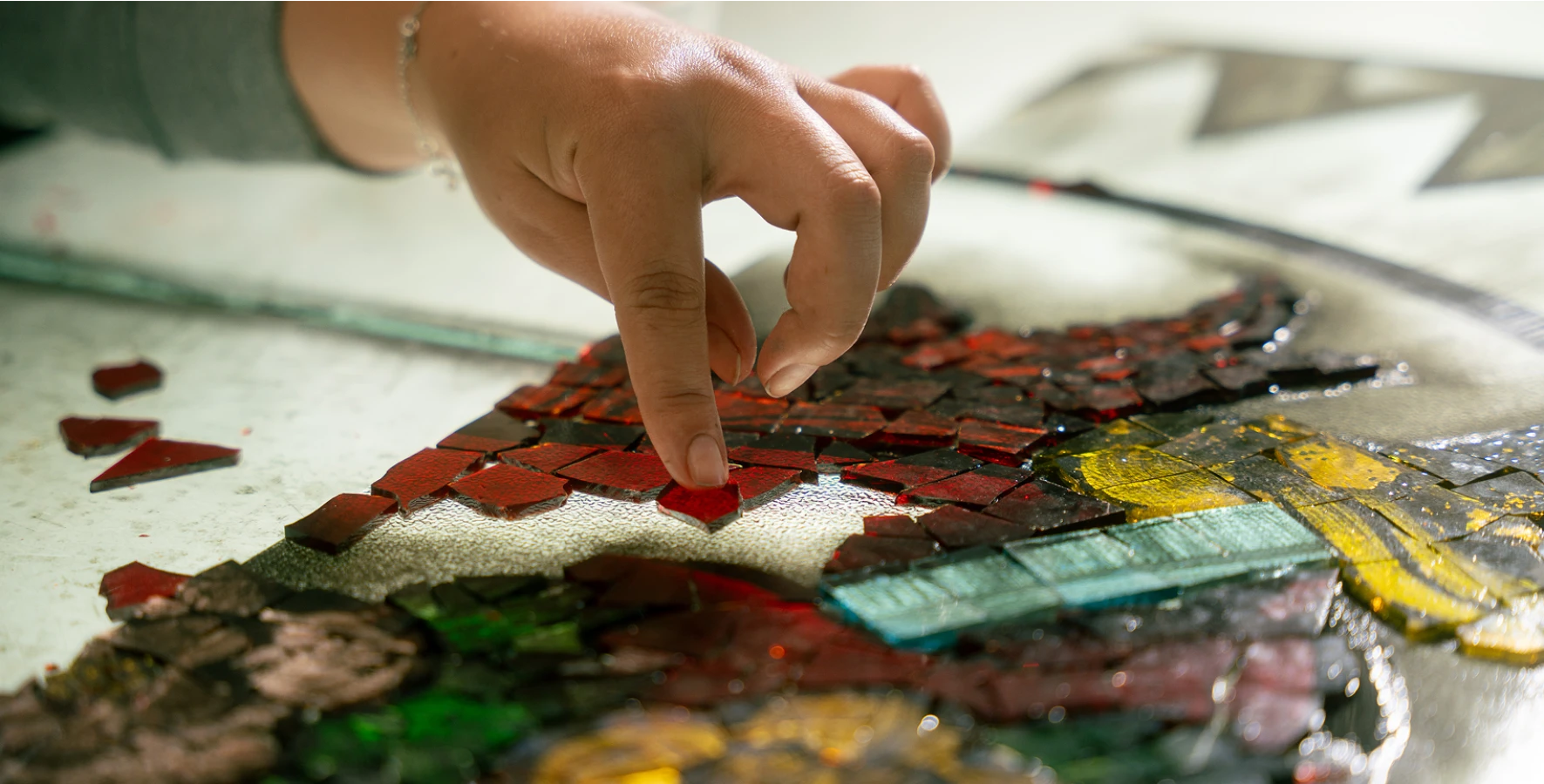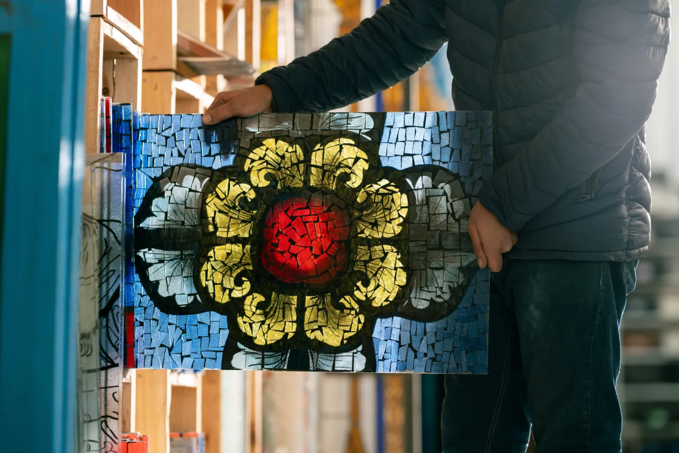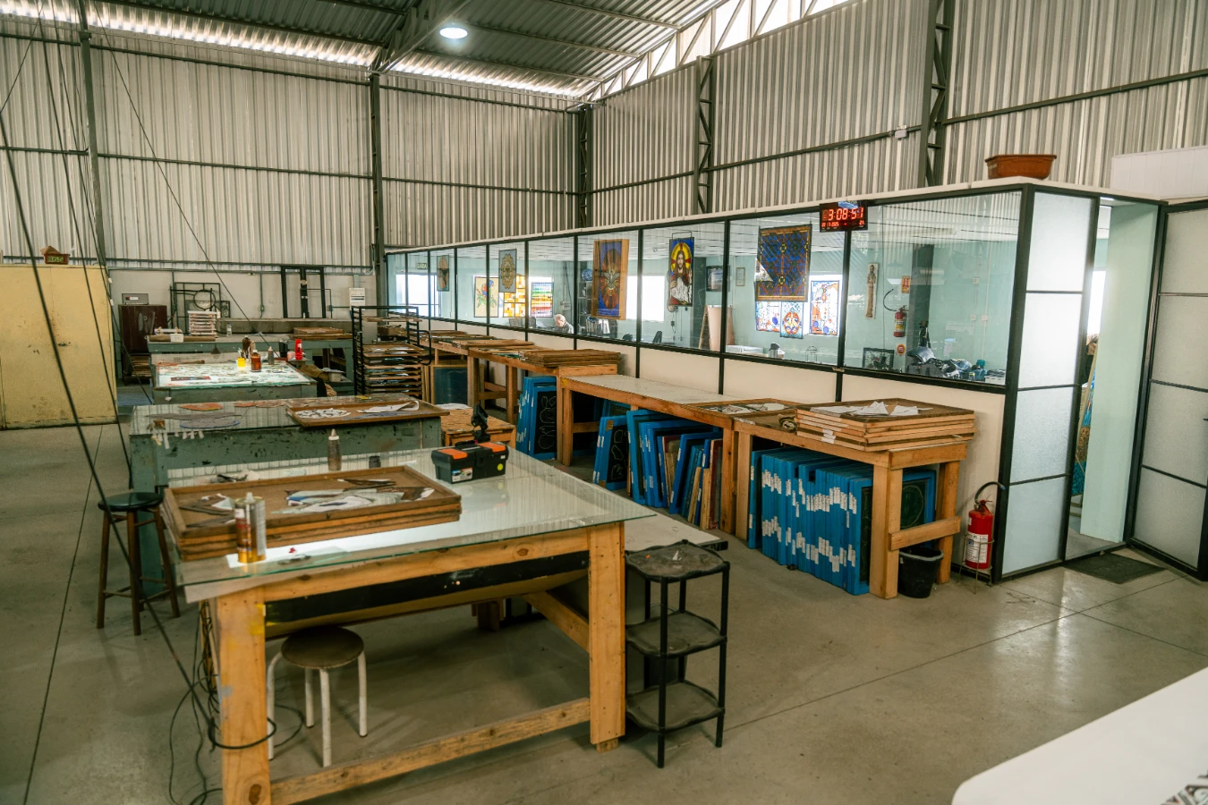 A produção segue um processo criterioso: captação da ideia, criação do projeto, aprovação, escolha dos materiais de qualidade, execução artesanal, revisão, transporte seguro e instalação final. Utilizamos técnicas como Tiffany, vitral com chumbo estanhado, fusing, Mosaicos e outras, sempre adaptando o estilo às necessidades do cliente e ao ambiente em que a peça será instalada.